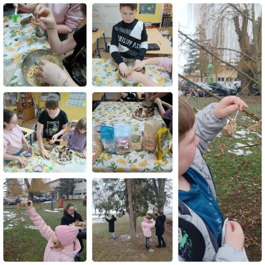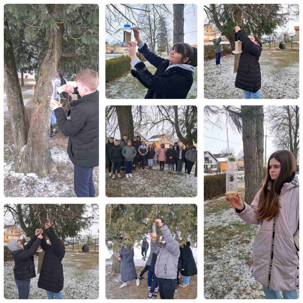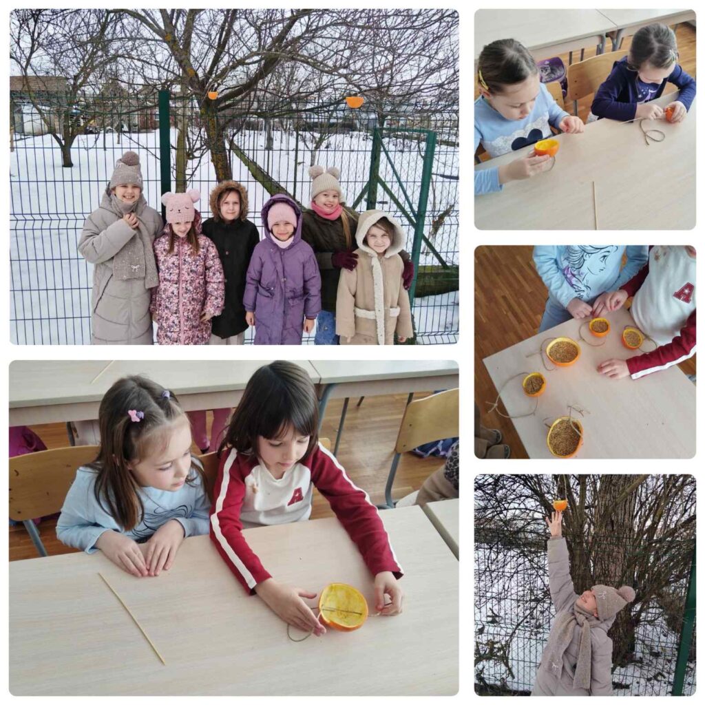 Učenici skupine „Mali domaćini“ Područne škole Marijanci, zajedno s učiteljicom Monikom Popović Dorkić, izrađivali su eko hranilice od narančine kore. Učenici 1. i 4. razreda matične škole s učiteljicom Anom Živković Havidić izrađivali su hranilice od češera i papirnatih rola te oblikovali smjesu sjemenki u „kolačiće” za ptice. Učenici 6. razreda, uz vodstvo nastavnice Svjetlane Falamić, izradili su hranilice od starih tetrapaka i plastičnih boca, dajući novi život materijalima koji bi inače bili odbačeni.