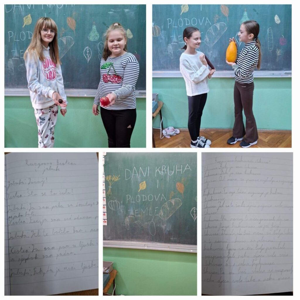 Učenici 2.razreda sa svojom su se učiteljicom, kroz radionicu, podsjetili važnosti hrane i svih plodova zemlje za život svih živih bića te ukrasili učionicu prekrasnim jesenskim plodovima koje su sami pronašli. Učenice 4.razreda odradile su vrhunski posao, same su osmislile dva kreativna i emotivna igrokaza sa jesenskim plodovima u glavnim ulogama i oduševile stvaralačim, ali i glumačkim sposobnostima.