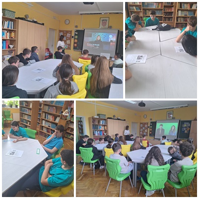 U okviru obilježavanja Dana medijske pismenosti u našoj školskoj knjižnici za učenike 7. i 8. razreda školska je knjižničarka provela radionicu pod nazivom „Klikni, razmisli, provjeri! – Kako prepoznati lažne vijesti“. Radionica je bila usmjerena na razvoj kritičkog mišljenja i medijske pismenosti. Učenici su kroz različite interaktivne aktivnosti, nastavne listiće i primjere lažnih vijesti analizirali medijske sadržaje, učili razlikovati činjenice od mišljenja te prepoznati manipulativne i senzacionalističke naslove. Poseban naglasak bio je stavljen na razvijanje sposobnosti provjere izvora informacija i odgovornog korištenja interneta i društvenih mreža. Radionica je potaknula učenike na aktivno sudjelovanje, raspravu i promišljanje o informacijama koje svakodnevno susreću u medijima.