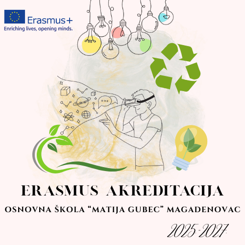 Agencija za mobilnost i programe EU na temelju Odluke o dodjeli Erasmus akreditacije u području odgoja i općeg obrazovanja našoj ustanovi dodijelila je Erasmus akreditaciju u području odgoja i općeg obrazovanja. Akreditacija se dodjeljuje za razdoblje od 1. veljače 2025. do 31. prosinca 2027. Kroz strukturirane tečajeve, praćenje rada (Job shadowing) i mobilnosti učenika