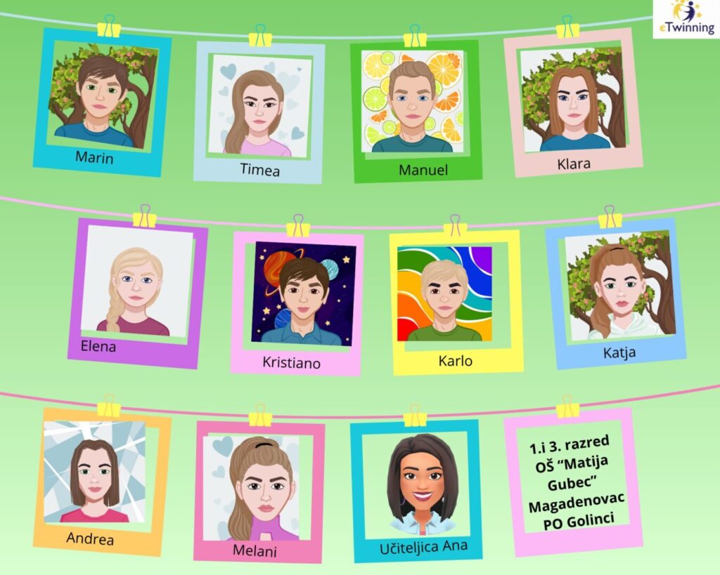 Tijekom školske godine 2025./2026. ćemo uz uvodne i završne projektne aktivnosti ostvariti i učeničku suradnju s partnerima u projektu kroz aktivnost Priča u digitalnom ruhu i najmanje 5 aktivnosti. Za sada smo odradili uvodne aktivnosti, učiteljica i učenici su ispunili ankete za potrebe projekta. Digitalne alate koje smo koristili za prvu aktivnost su bili Avatar Makera i Canva video, uz pomoć kojih smo se predstavili ostalim sudionicima projekta.