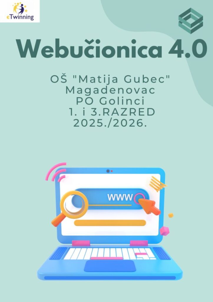 Učenici Područnog odjela 1.i 3. razreda i njihova učiteljica Ana uključili su se i ove školske godine u nekoliko eTwinning projekta, a među njima i Webučionica 4.0. Projekt Webučionica 4.0 ima za svrhu korištenje informacijsko-komunikacijskih tehnologija kako bi se prenijela stečena znanja na učenike i razvile digitalne kompetencije. Ovaj projekt povezujemo i s našom ovogodišnjom Erasmus akreditacijom gdje nam je jedan od ciljeva razvoj i upotreba digitalne tehnologije i alata.