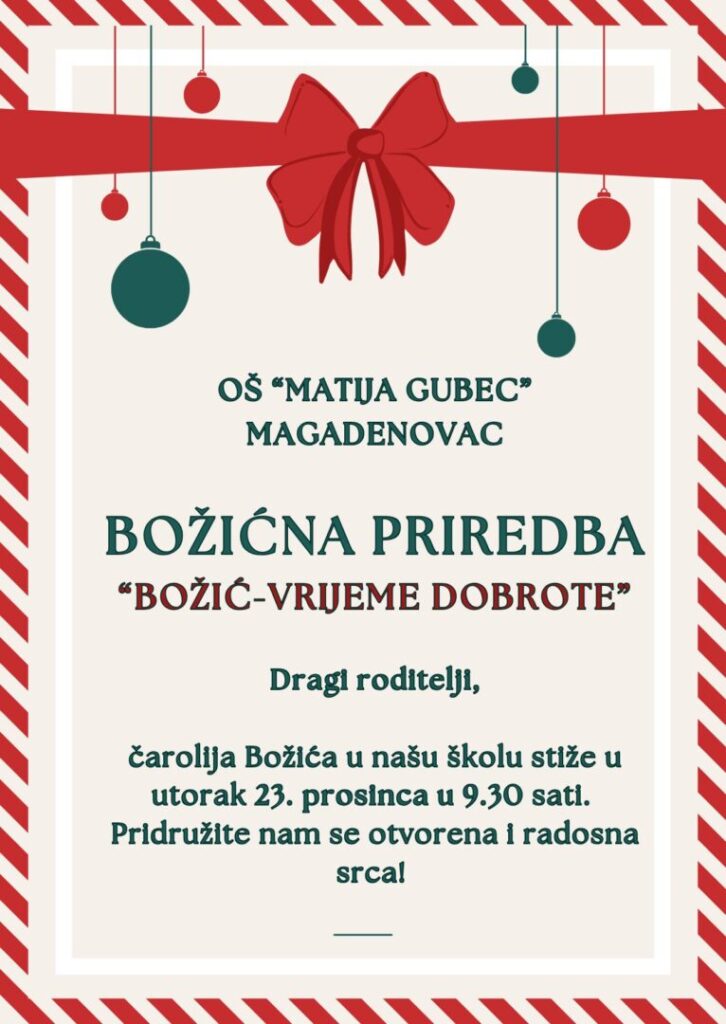 Sveti Nikola u gostima Dana 5. prosinca 2025. našu školu i područne odjele posjetio je sveti Nikola. Sa sobom je u učionice donio radost i košaru punu slatkiša. Njima je razveselio učenike, a oni su njemu zahvalili osmjehom, pjesmom i recitacijama. Naše su učionice...