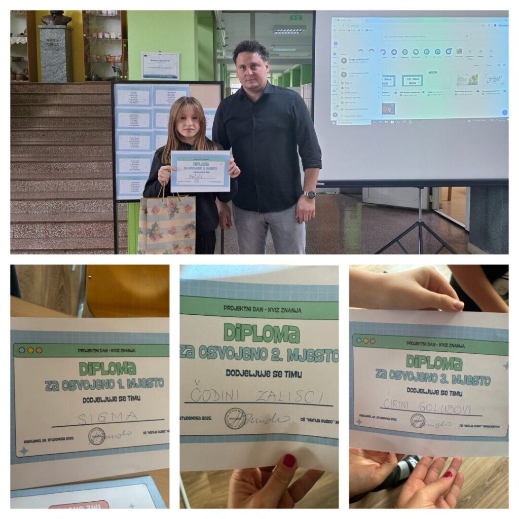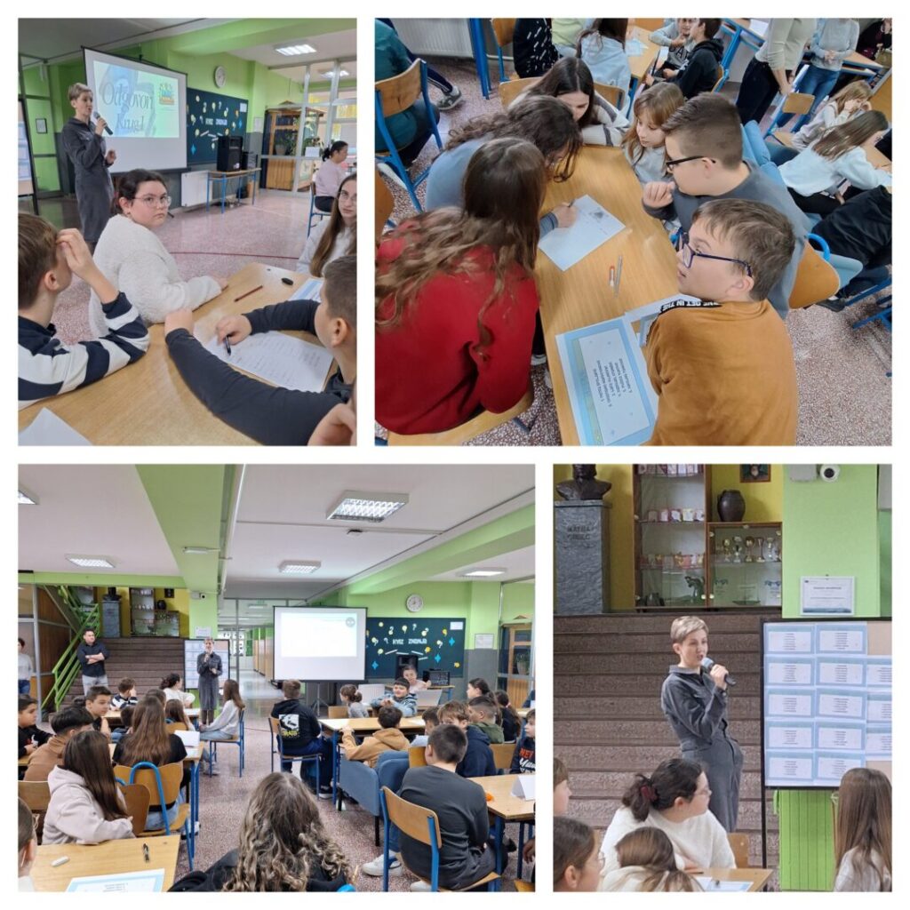 Kviz znanja omogućio je učenicima aktivno učenje kroz razmjenu ideja i primjenu naučenog u praktičnim zadacima. Aktivnost je potaknula motivaciju, suradnju i dublje razumijevanje sadržaja kroz zabavan i interaktivan pristup učenju.