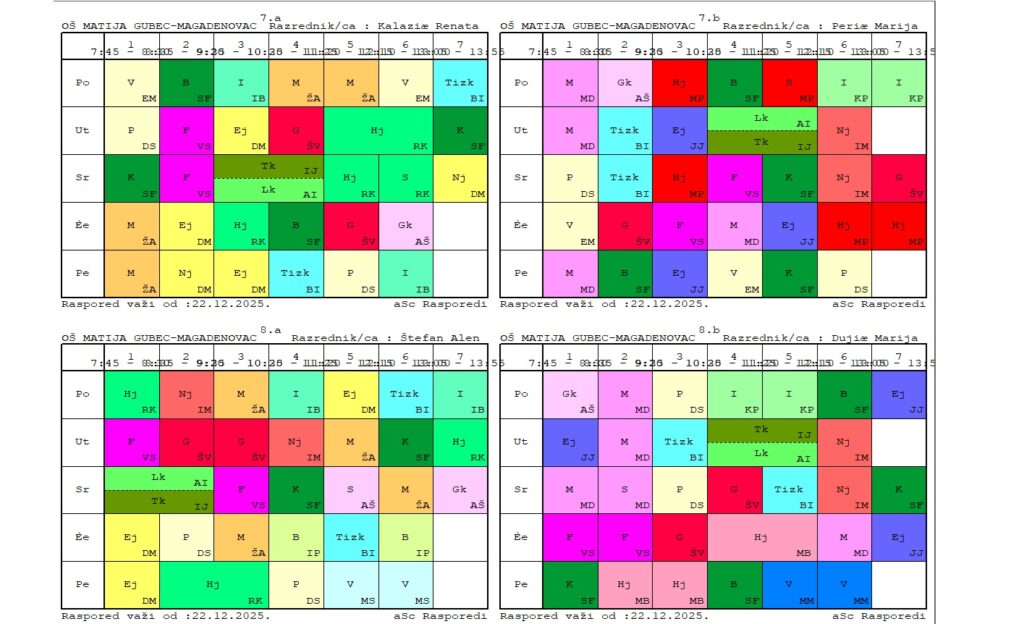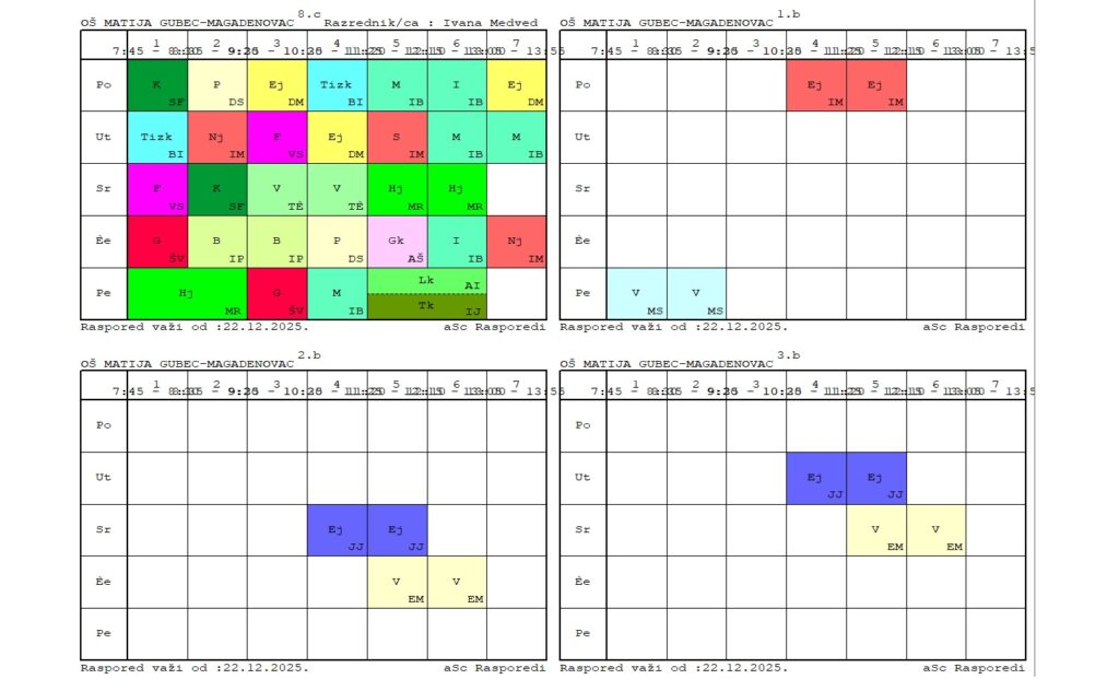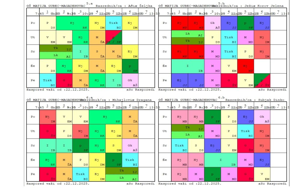 Raspored sati razredne nastave za školsku 2025./2026. godinu