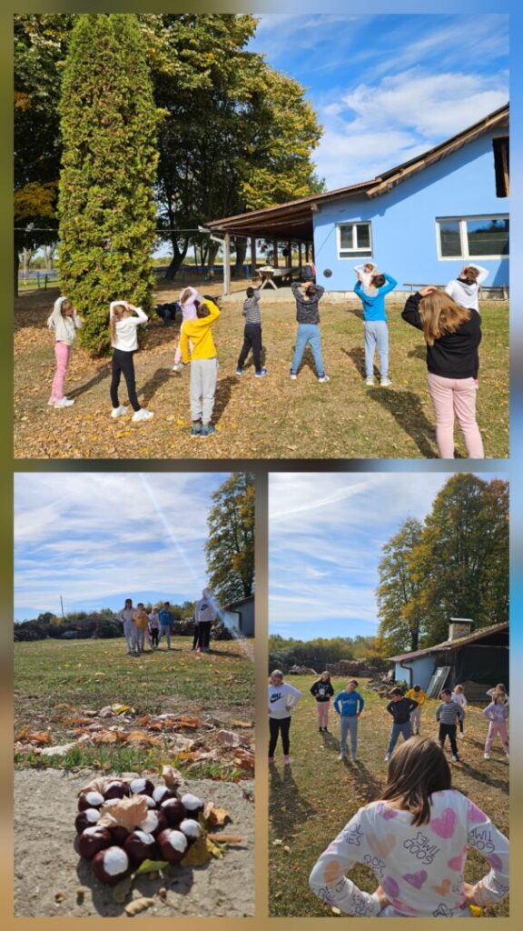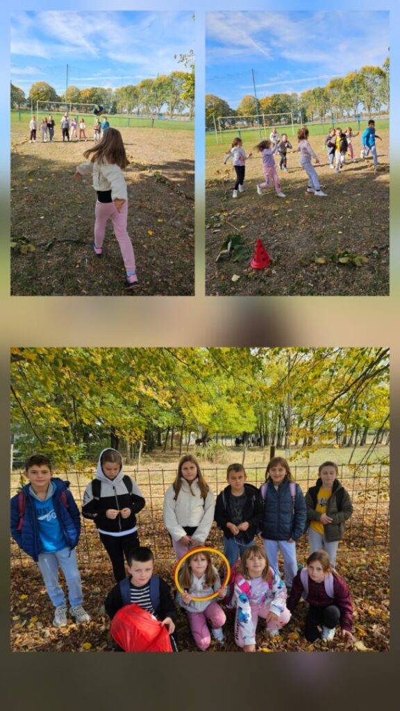 U utorak, 14. listopada, pozdravili smo JESEN pješačenjem kroz selo sve do nogometnog igrališta. Kroz integriranu nastavu prirode i društva, hrvatskog jezika i TZK-a proveli smo zanimljive aktivnosti. Ondje smo razgovarali o svim uočenim promjenama, poslovima, vremenskim prilikama, plodovima, životinjama i odijevanju koje nam donosi to divno i raskošno godišnje doba. Budući da nam se vjetar zaigrao s umnim mapama, zadatak smo dovršili na idućem satu u učionici. Na šuškavoj pozornici u šarenom lišću izvodio se igrokaz Jadranke-Čunčić Bandov, Jesenska šala, interpretirala pjesma Stanislava Femenića, Jesenski dani te priča nepoznatog autora Operacija kesten. Poslije razgibavanja uslijedila je natjecateljska igra Vruće kestenje. Sakupljanjem i slaganjem suhih grančica obilježili smo teren za omiljenu igru Graničara. Puni doživljaja i umornih nogu, učenici su se vratili svojim kućama.