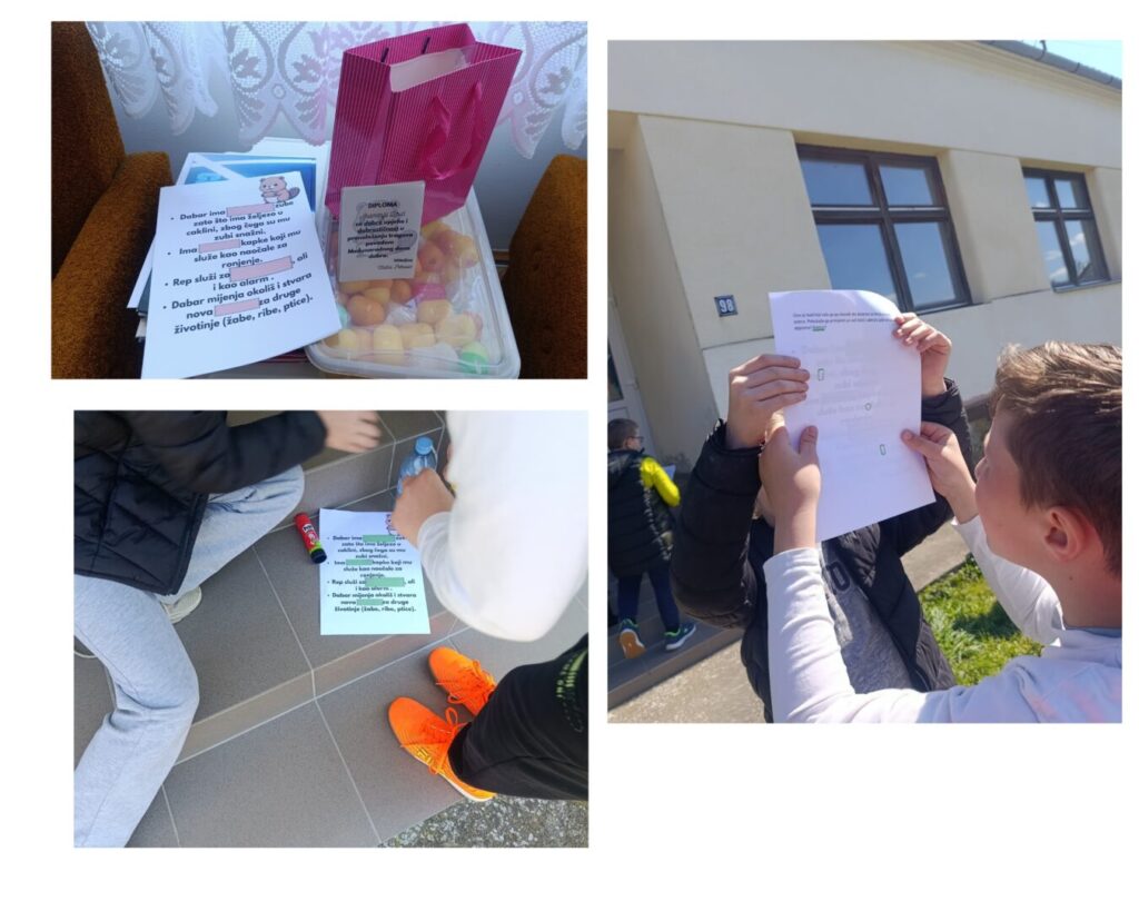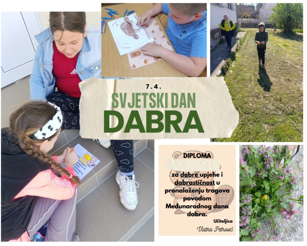 Svjetski dan dabra (7. travnja) bila nam je savršena prilika da naučimo nešto o ovim fascinantnim “inženjerima prirode”. Govorili smo o super moćima dabra i na nekoliko dana on je postao junak naših priča. Narančasti super snažni zubi, prozirni kapci kao “ugrađene” naočale za ronjenje i snažan rep kao lopatica ,koji mu služi za kretanje vodom bile su činjenice koje su nas navele da istražujemo još. Na satu prirode i društva saznali smo u koje godišnje doba je dabar najaktivniji, kojoj vrsti životinja pripada, te kako se hrani. Na satu likovne kulture naslikali smo našeg dabra te pogledali čudesne brane koje je sagradio, a sate izvannastavnih aktivnosti iskoristili smo za rješavanje kodova i razbijanje šifri koristeći činjenice o dabrovima.