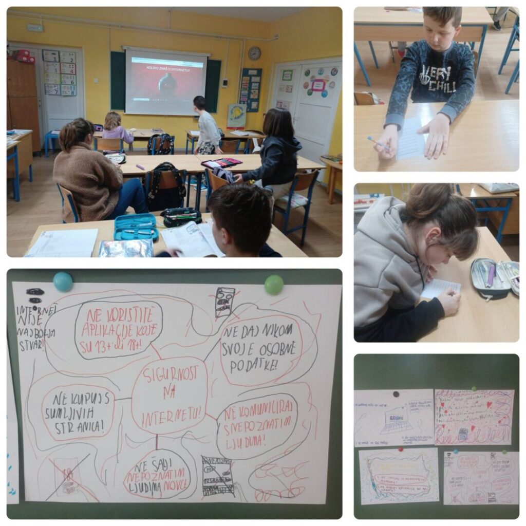 Mjesec smo započeli obilježavanjem Dana sigurnijeg interneta. Razgovarali smo o vremenu provedenom na internetu, o tome što učenici pretražuju na internetu te koje igre igraju na mobilnim uređajima. Klasificirali smo igre na potencijalno opasne i sigurne. Odigrali smo kviz o poznavanju interneta, a svaki učenik je izradio i plakat s uputama o sigurnom korištenju interneta. Učenici su tijekom jednog tjedna samostalno proveli istraživanje – bilježili su koliko vremena provode na mobilnim uređajima te su na kraju analizirali dobivene podatke i donijeli zaključke kako bi trebali puno manje vremena provoditi „surfajući“ internetom.