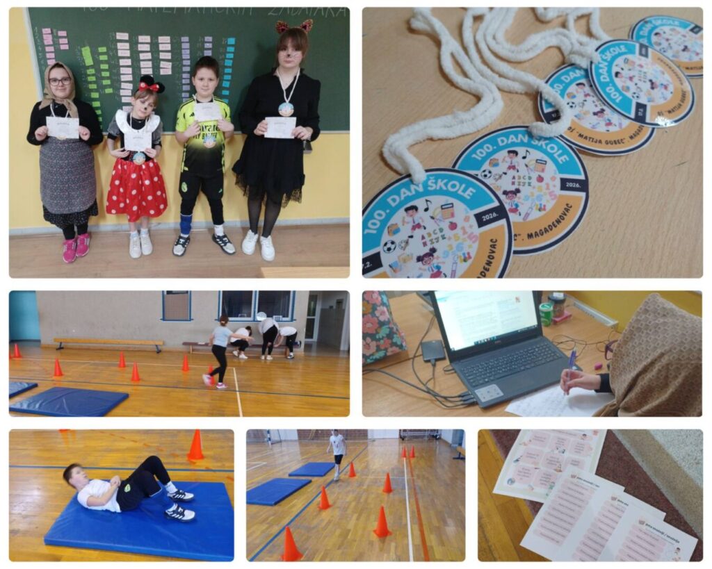 Kao i svake godine, i ove smo, kroz prigodne aktivnosti obilježili slavnih 100 dana u školi. Sjedili smo u krugu i 100 sekundi bili u tišini, riješili smo 100 zadataka iz matematike, kroz igru razvrstali 100 glagola u prošlosti, sadašnjosti i budućnosti, igrali lovice 100 sekundi, odradili 10×10 opće pripremnih vježbi, odradili poligon sa10x10 vježbi te postali 100 puta snažniji. Za kraj projekta, učenici su ispunili evaluaciju te dobili diplome za uspjeh, znanje i upornost u ovih 100 dana u školi.